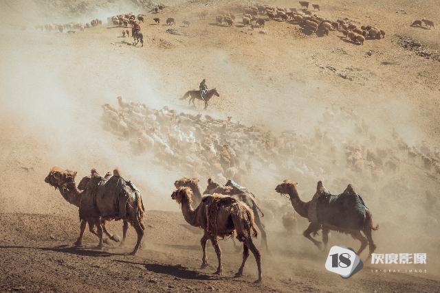早餐后出发,前往阿尔泰山区,拍摄一年一度的阿勒泰哈萨克牧民【春季转场】。哈萨克,汉语意为自由的人,是一个世居在中亚、伊犁河谷和阿尔泰山区的游牧民族。每年春秋两季,牧民们都会赶着家里的牛羊、驼队,驮着家里的所有生产生活工具,在冬窝子和夏季牧场之间辗转迁徙,远达上千公里。浩浩荡荡的队伍在山口、峡谷、荒原扬起满天尘土,像是一曲永不停息的苍凉雄壮的牧歌。