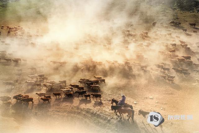 萨尔布拉克转场:地处大山深处,中-蒙边境。这是传统的牧民转场道路,哈萨克牧民每年一度的春秋转场,恒守千年不变的传统,仿佛列队士兵,场面宏大,尘土飞扬!