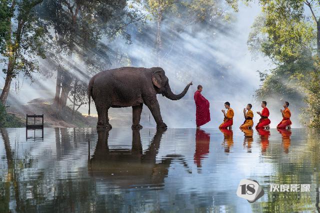 与象同行——万象,凯旋门晨曦,僧俗共生的街头,全球唯一两大自营大象禅意创作基地—水中镜月/人象共生,禅意僧侣、天空之境,剧景人像,夜晚禅意僧侣……