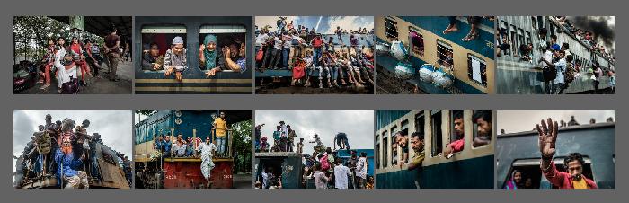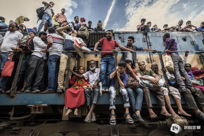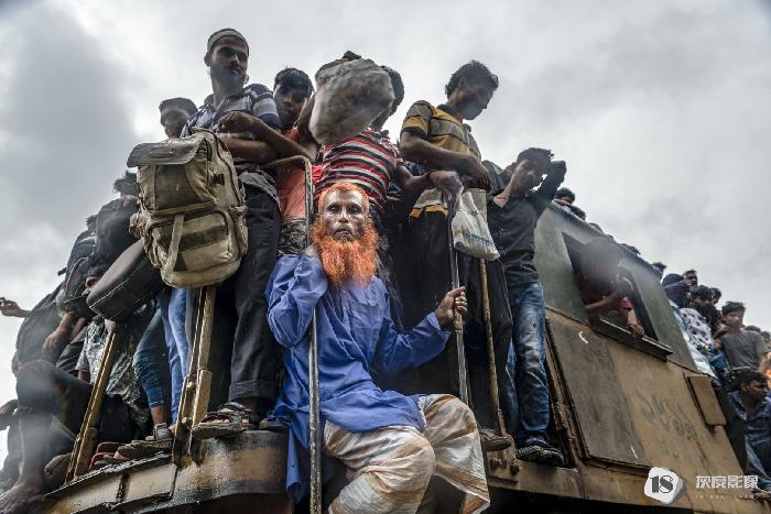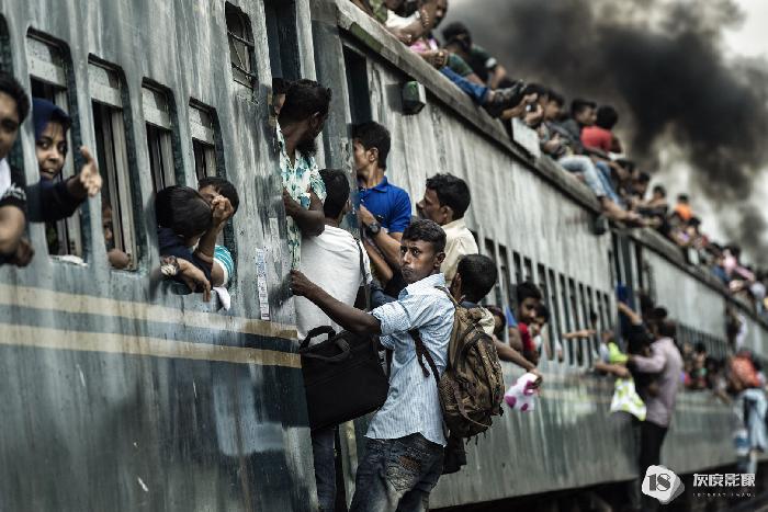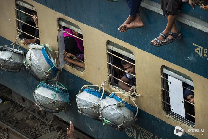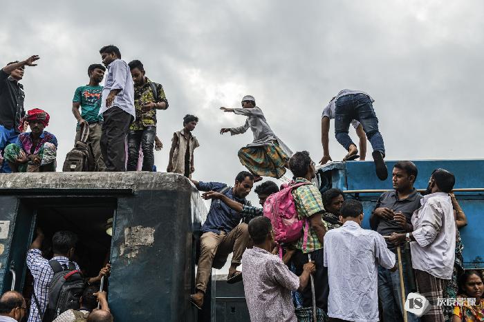 叶丹蕾摄影师这组照片拍摄的是一月孟加拉朝圣节盛况过后,百万圣徒挤火车返乡的画面。车厢内水泄不通,胆大的人们吊着车门、在车顶上窜跳,拥挤、嘈杂,只为夺得回乡的一席之地。