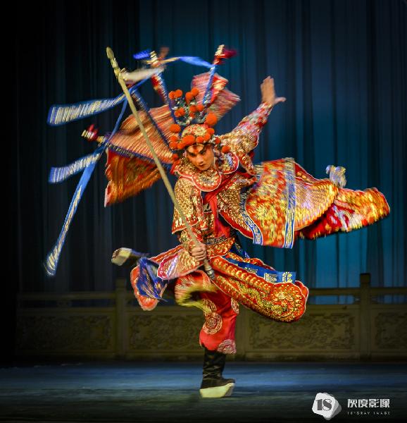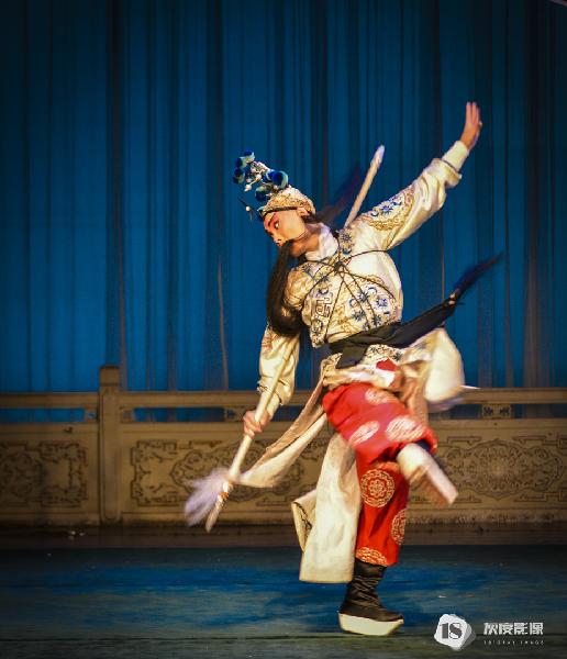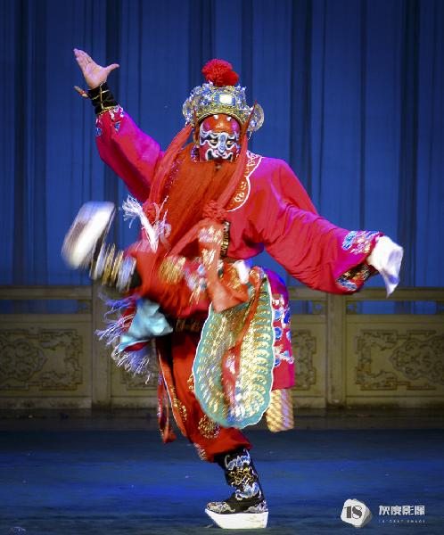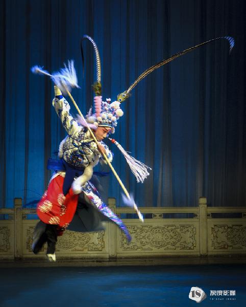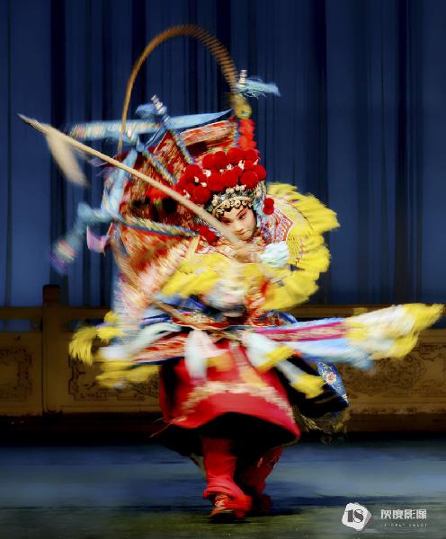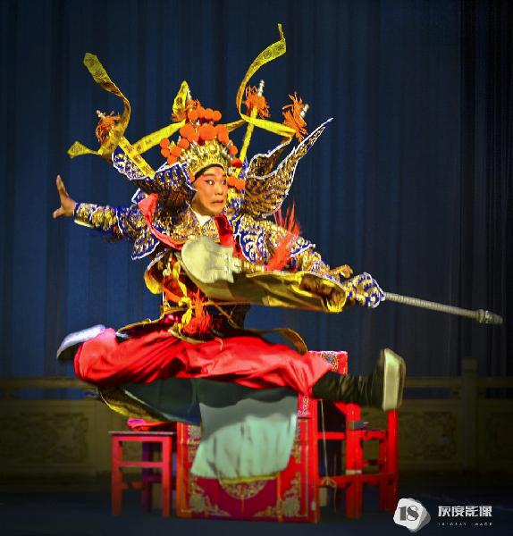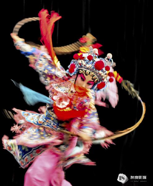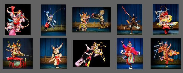 伶人们在舞台上跳跃、翻滚,使出自己多年苦练的技艺。那柔美的身段,舞动着精绣的戏服及抛出去雪白如云的长袖,闪耀在灯光下布满珠宝的头饰,随着音乐似乎也在翩翩起舞。