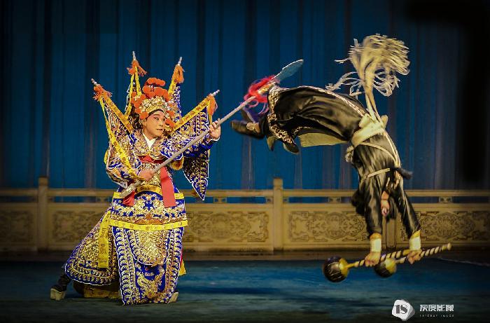 正所谓“台上一分钟,台下十年功”,舞台上的伶人姿态迥异,细致到面部表情的管理,都将角色本身的特点展现的淋漓尽致。手举长枪,鬓发飞扬,随着音乐舞动让人挪不开眼睛。时而低眉浅笑,顾盼流离间俘获了观者之魂,时而怒目而视,圆瞪着眼,配合威严大气的服饰,又带领观者进入另一番境地。